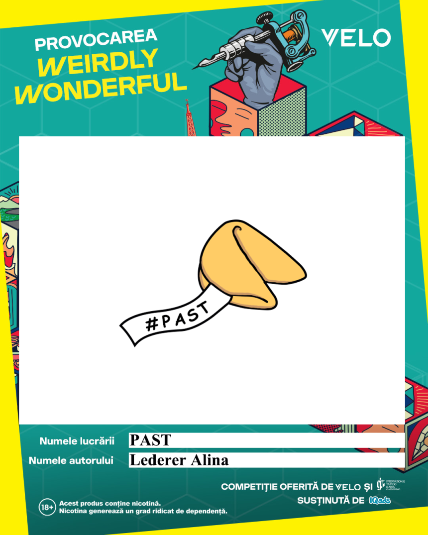 Lucrare realizată în programul Adobe Photoshop cu un răvaș, simbol al viitorului și al predicțiilor, dar mesajul este „#PAST”, adică trecut. O antiteză simplă și conceptuală potrivită pentru oamenii gânditori.