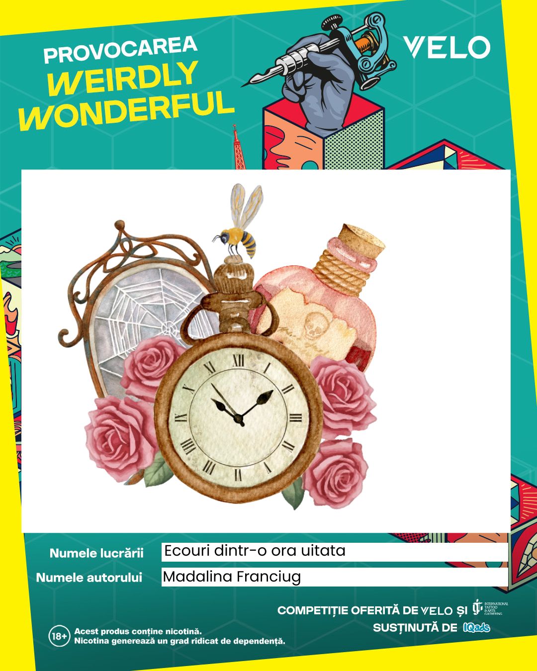 Lucrarea surprinde felul în care văd eu trecerea timpului: o combinație de mister, frumusețe și fragilitate. Este un colaj al propriilor mele gânduri, într-o formă delicată și puțin magică.