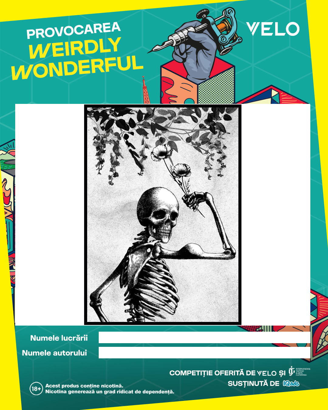 Lucrarea este un colaj digital făcut în Photoshop, cu câteva intervenții grafice adăugate pentru efect. Un schelet ridică o floare sub un frunziș, punând față în față moartea și un gest delicat. O imagine despre contraste care se întâlnesc într-un mod surprinzător.