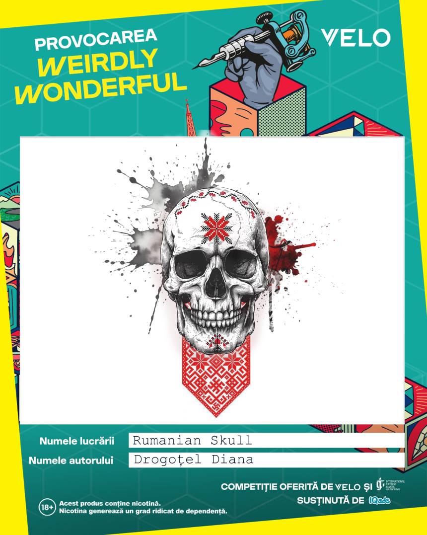 Duritatea rece a craniului contrastează puternic cu delicatețea fină a motivelor tradiționale.