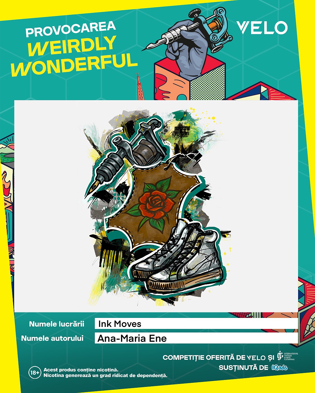 „Ink Moves” vorbește despre evoluție prin cerneală, despre energie, direcție și curajul de a-ți purta arta în mod activ.