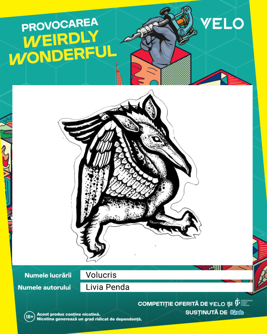 Un hibrid de vigilență și instinct: jumătate zbor, jumătate pradă — simbol al forței care vede și acționează înaintea tuturor.